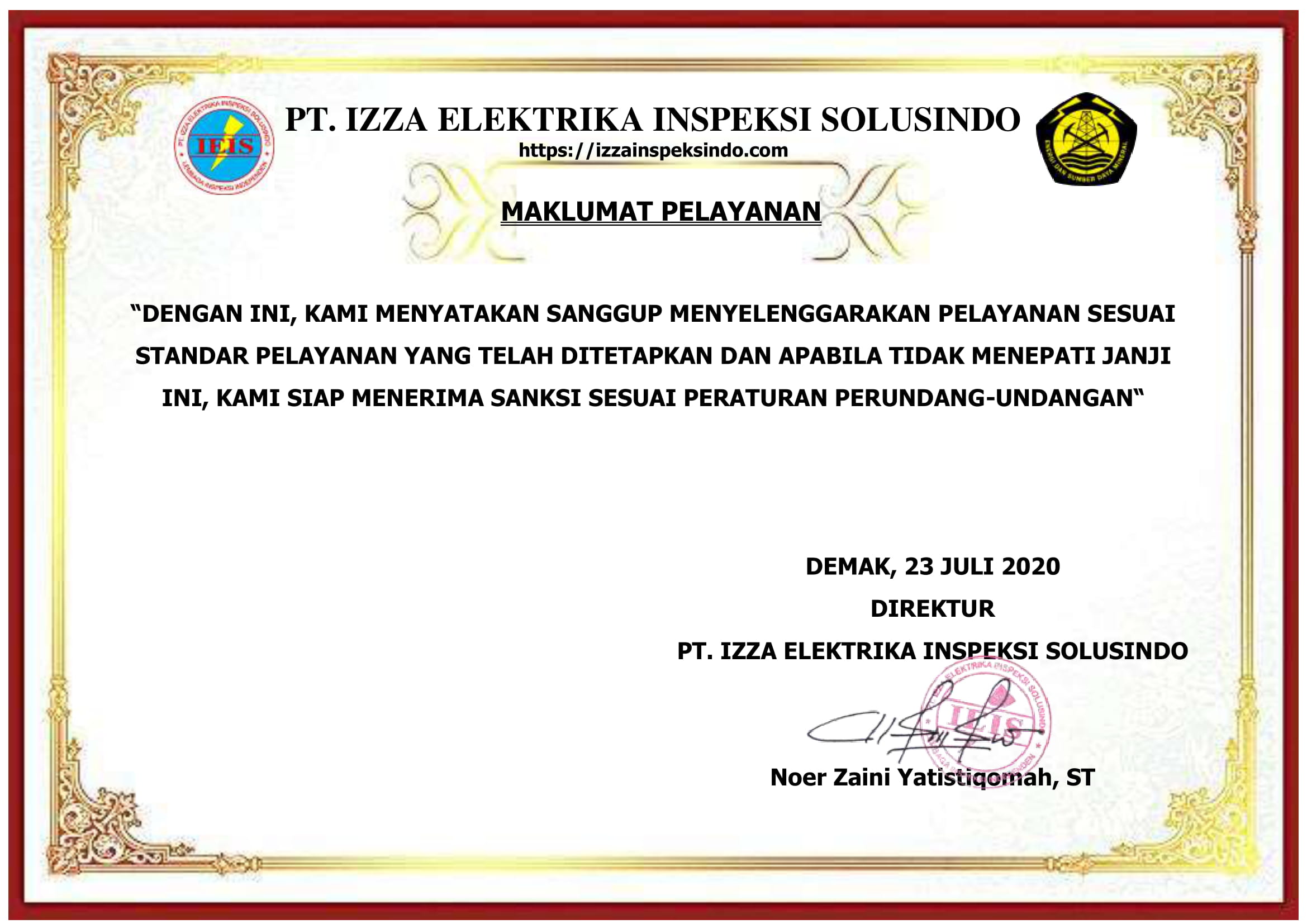 "Degan Ini, Kami Menyatakan Sanggup Menyelenggarakan Pelayanan Sesuai Standar Pelayanan Yang Telah Ditetapkan Dan Apabila Tidak Menepati Janji Ini, Kami Siap Menerima Sanksi Sesuai Peraturan Perundang Unadngan"